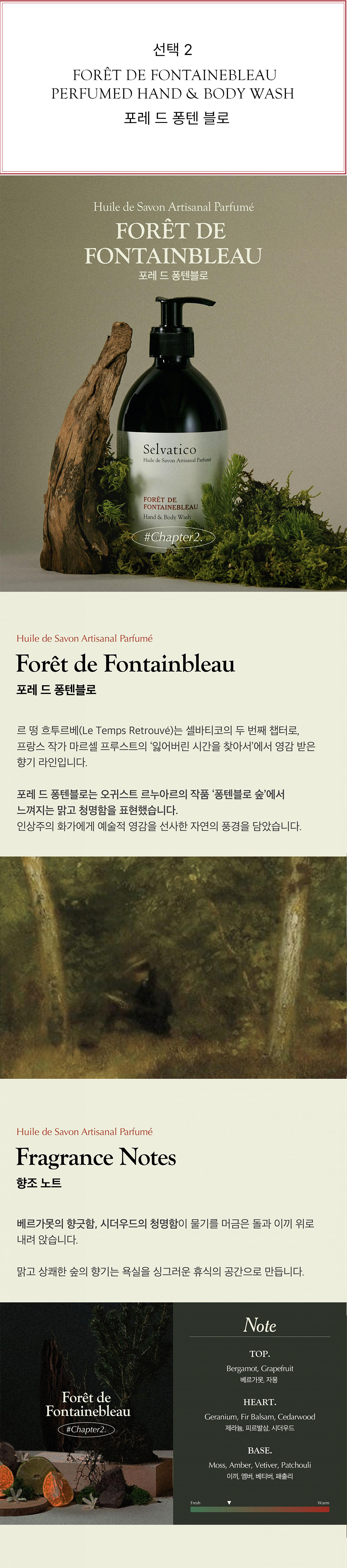 포레 드 퐁텐블로 : 정제수,포타슘코코에이트,향료,폴리글리세릴-3카프릴레이트,글리세린,포타슘올리베이트,하이드록시에틸셀룰로오스,코코넛야자오일,테트라소듐이디티에이,토코페롤,올리브오일,다이소듐포스페이트,폴리솔베이트60,소듐포스페이트,리모넨,헥실신남알,하이드록시시트로넬알,시트로넬롤,리날룰