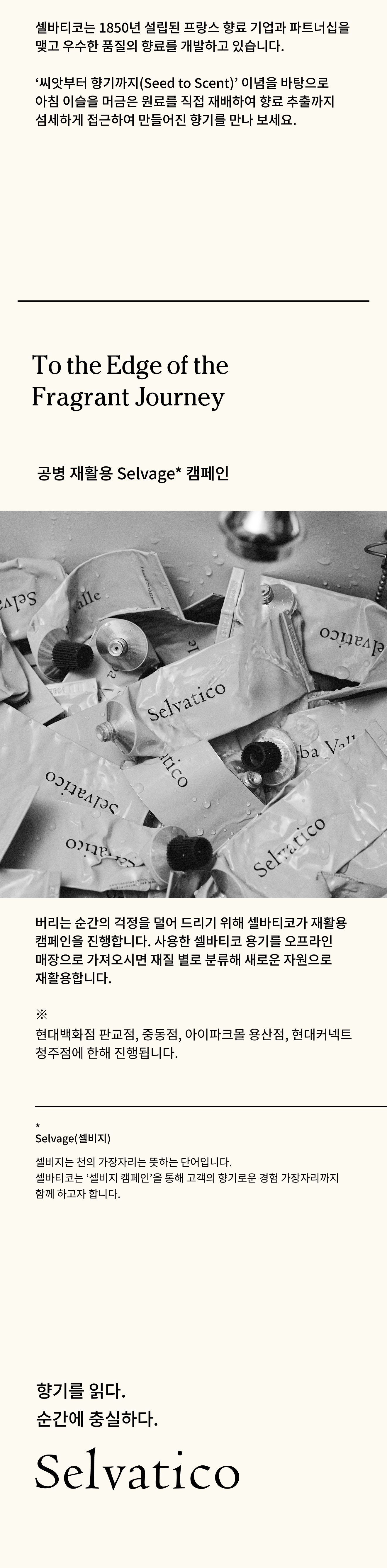 레몬, 베르가못, 텐저린, 블러드오렌지 | 장미, 자스민, 오스만투스 | 패출리, 머스크, 바닐라, 통카빈